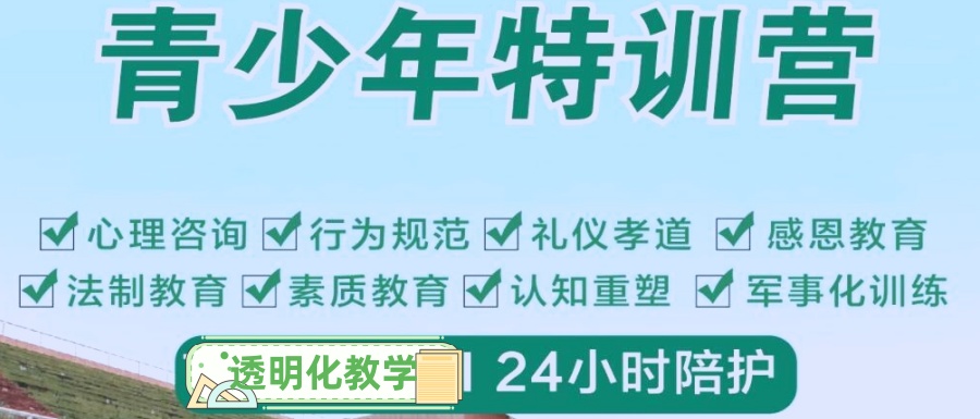 为什么选择我们学校进行教导?同步小初高文化课辅导,小班教学,因材施教,帮助孩子查漏补缺,不耽误文化课学习;课程全面:心理疏导、军事技能、野外训练、人格品质提升、励志教育、感恩教育、社会实践、文化课辅导。禁止教官打骂体罚孩子,深入孩子的内心,作风严谨尽职尽责,文明管理,科学管理;禁止教官打骂体罚孩子,深入孩子的内心,作风严谨尽职尽责,文明管理,科学管理,定期开设家长课堂,家校联动,教会家长如何与孩子沟通,改善亲子关系。