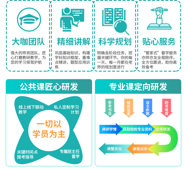 4、授课教师、学管师、班主任、考研APP全方位环绕式备考服务有效提升学习效率。